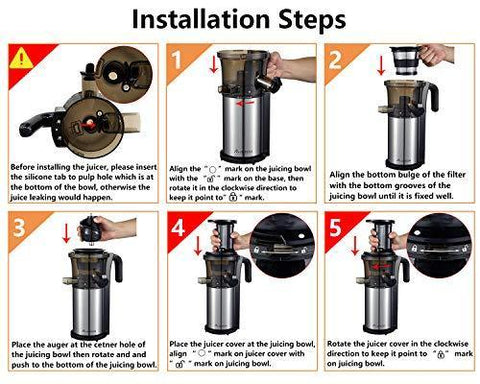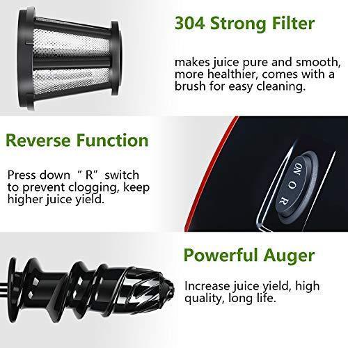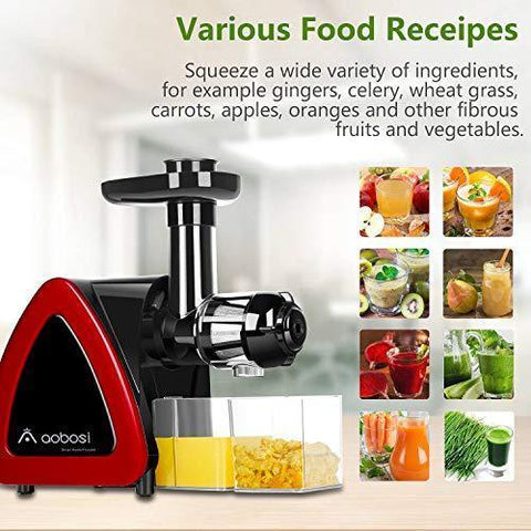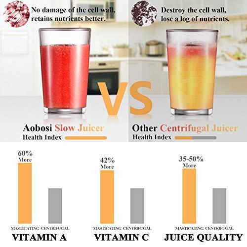 Aobosi Slow Masticating Juicer Extractor Compact Cold Press Juicer Machine with Portable Handle/Quiet Motor/Reverse Function/Juice Jug and Clean Brush for High Nutrient Fruit & Vegetable Juice