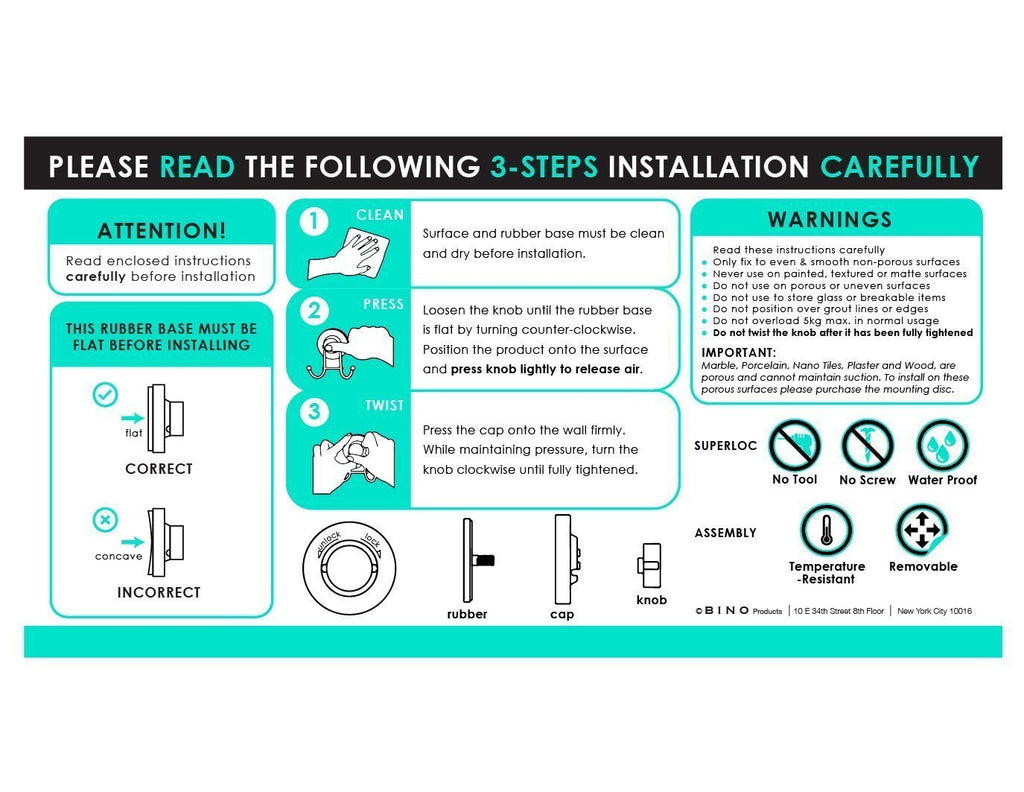 SMARTSUCTION technology combined with natural rubber allows for a powerful, long lasting adhesion to most surfaces Self-draining, stainless steel constuction prevents rusting Simply position on a smooth and clean surface, apply pressure and turn clockwise Holds up to 11 lbs Measures 11" x 4.5" x 7.25"