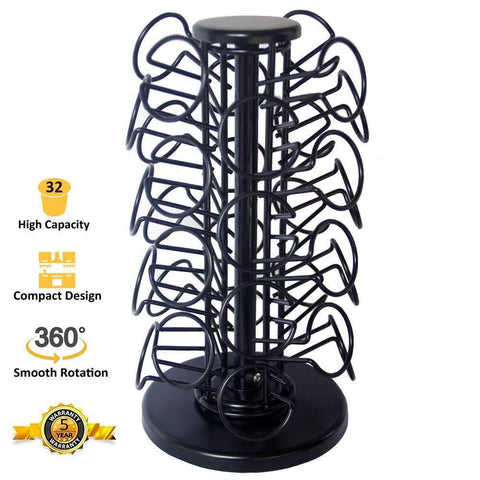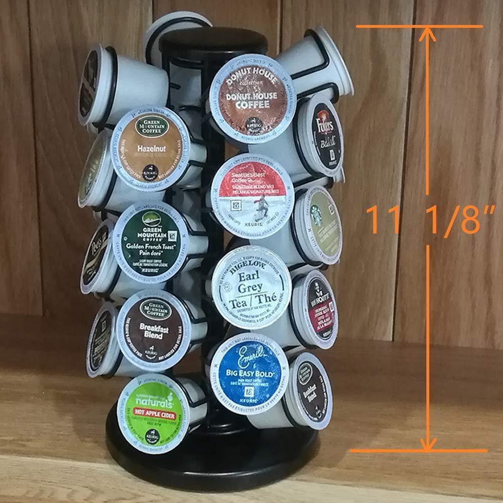 360 DEGREE REVOLVING BASE VERY EASY TO ACCESS ANY COFFEE POD Large knob on top, Spins smoothly with just a touch, Very convenient to access any flavor of coffee.