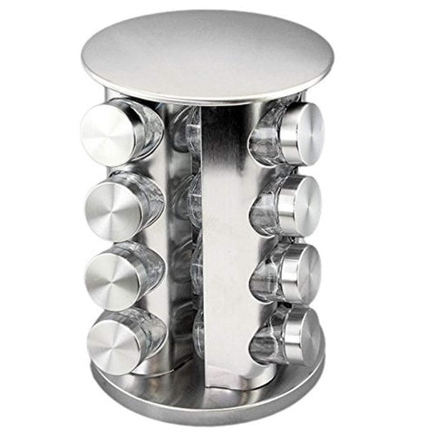 - This rotating spice rack includes 16 jars (Not include spices) and features sift pour tops for easy measuring and seasoning.