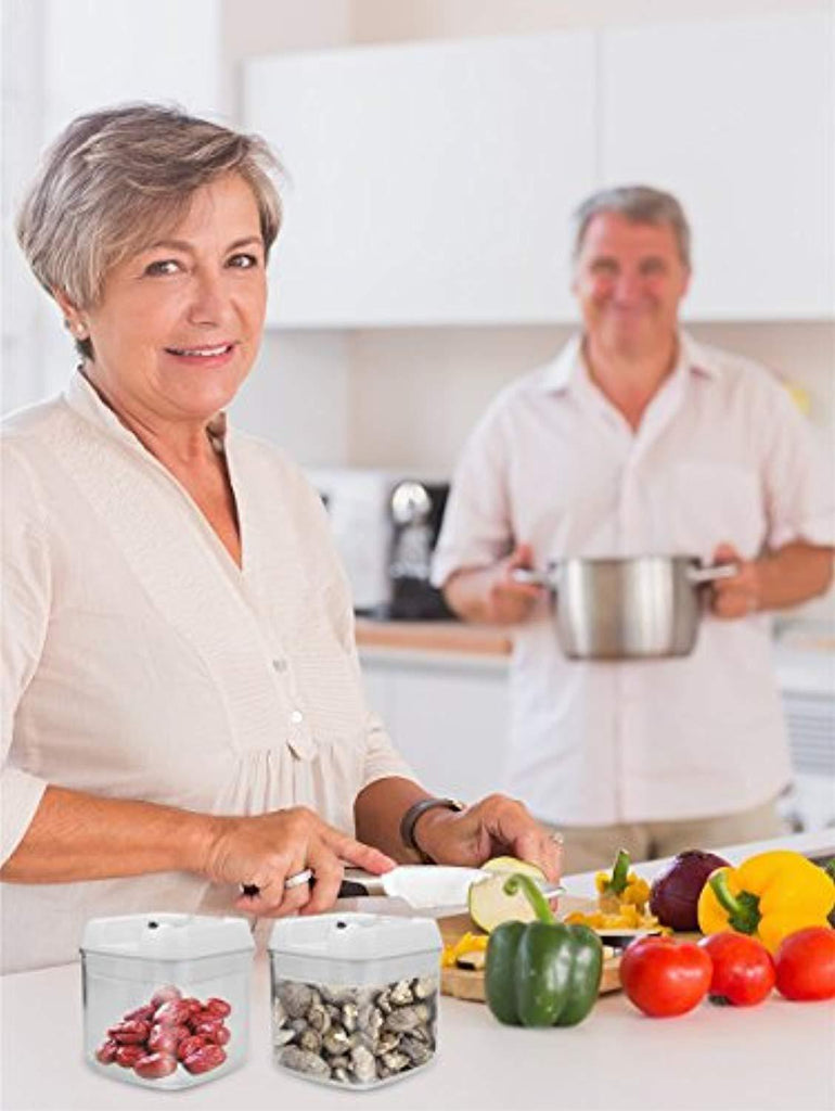 LID-LOCK MECHANISM & EASY CLEANING- Once the ring on the lid is pushed down, the silicone seal inside the lid will expand to seal the jar, creating complete airtightness. Pop the ring back up and it serves as a handle to lift the lid. Provides maximum freshness and prolonged food storage.Simply remove the silicone attached along the lids of each container and wash with soap and rinse with water.Easy to clean and dishwasher safe( only silicone gasket).