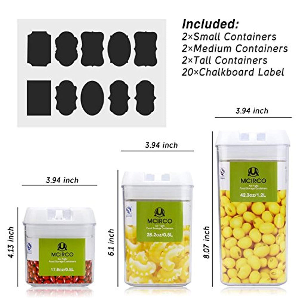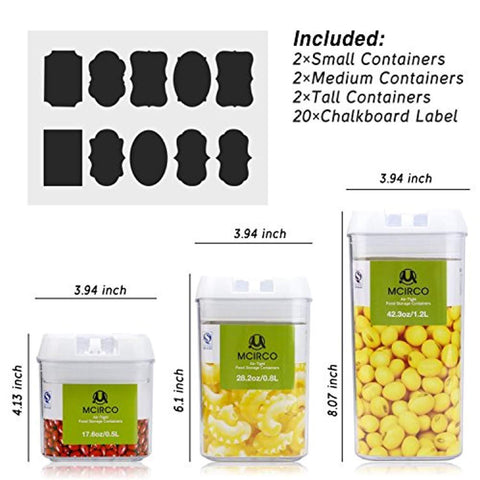 FOOD STORAGE CONTAINER SET- Package includes 2 Small Containers(17.6oz / 0.5 L), 2 Medium Containers(28oz / 0.8 L), 2 Tall Containers(42.2oz / 1.2 L), 20 pcs Chalkboard Lables.