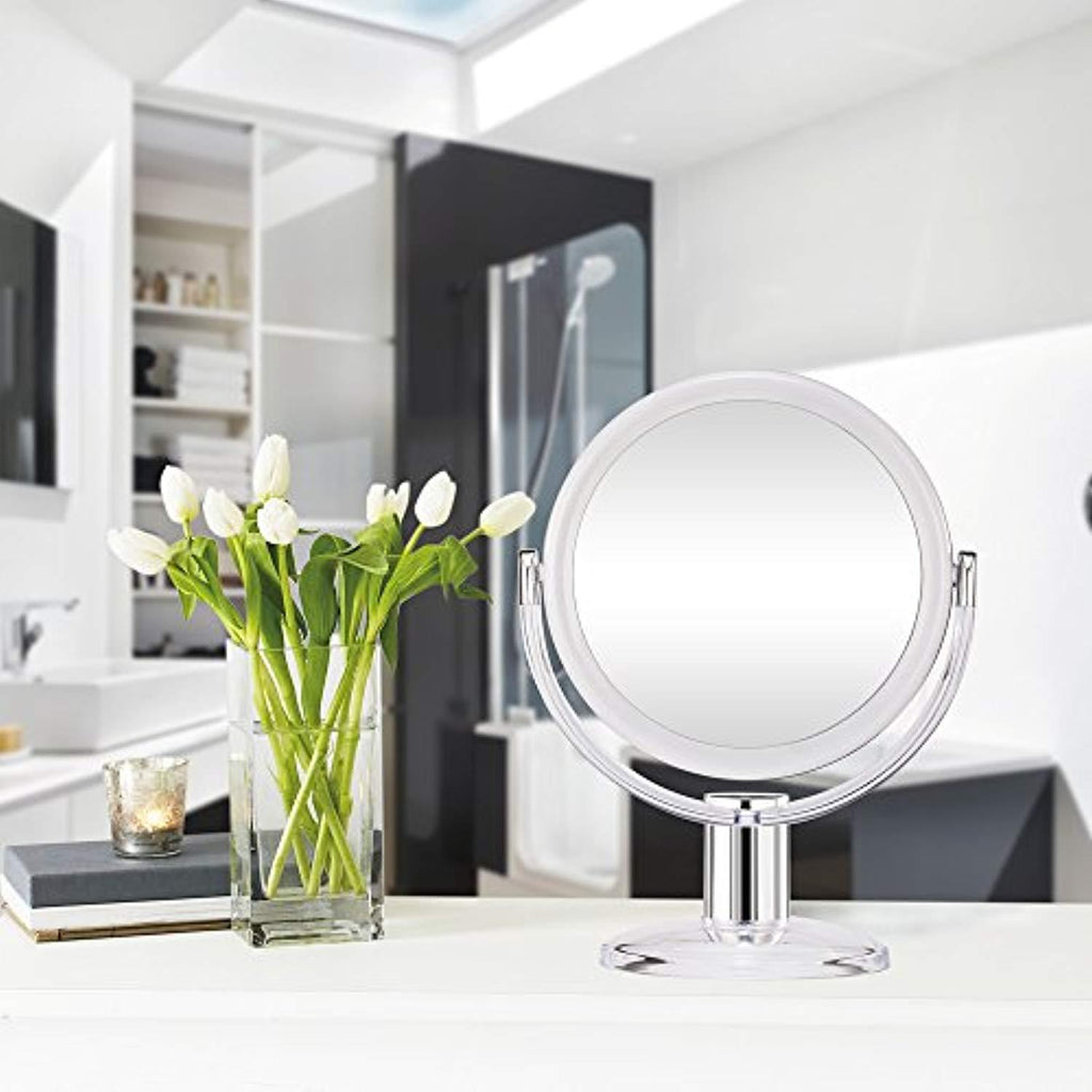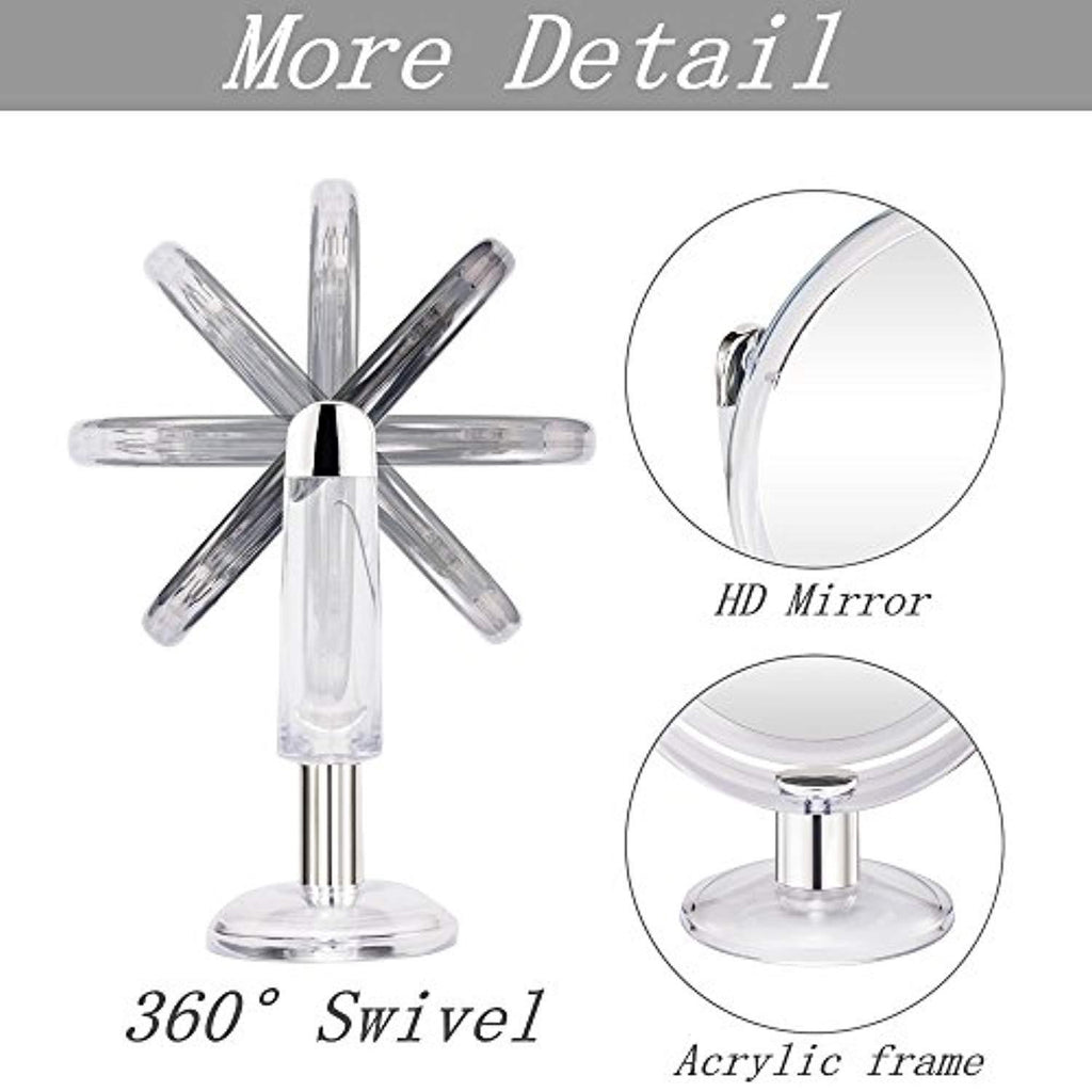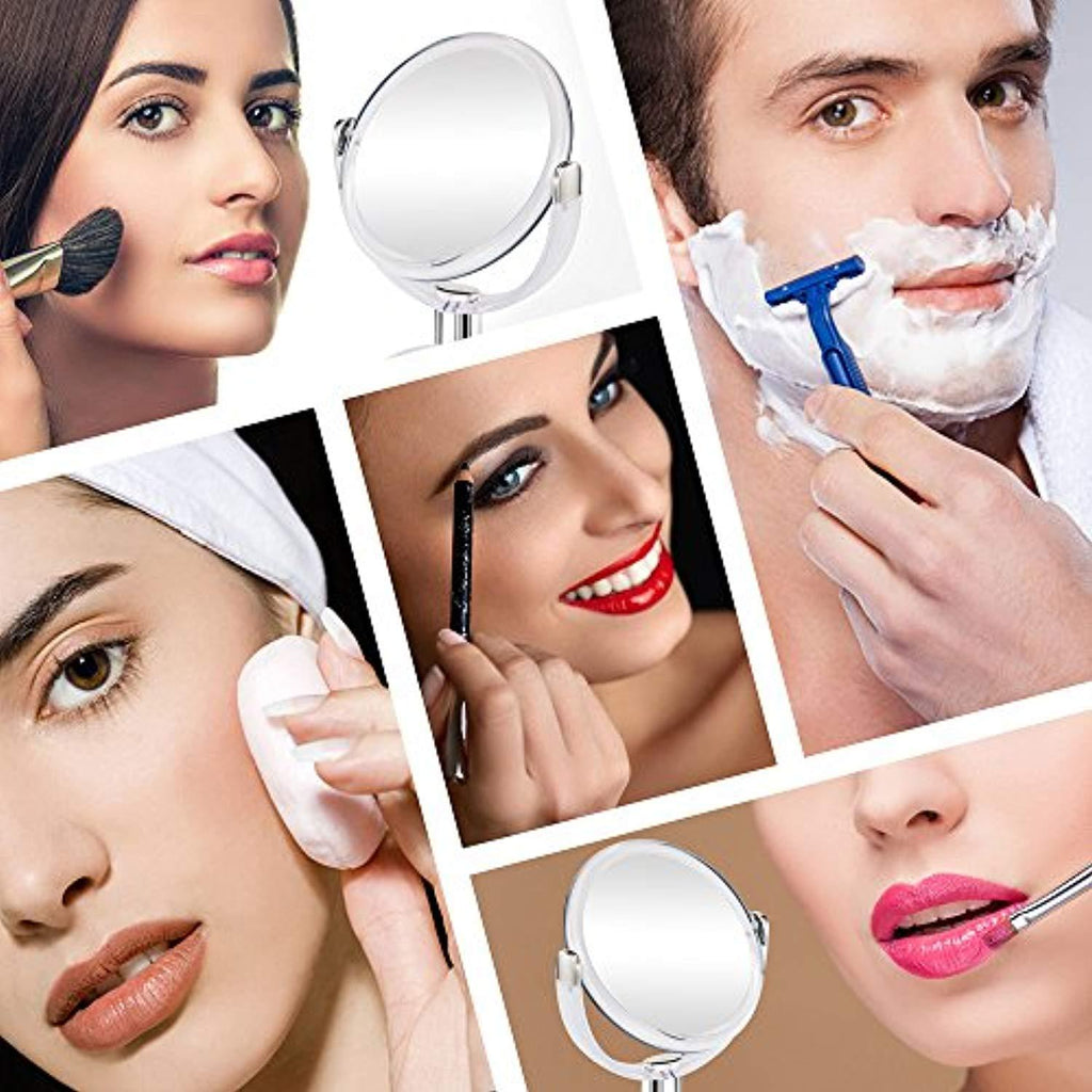 This Tabletop Double sided Makeup mirror features an 10X Magnification distortion free glass on one side and 1x reverse on the other side, which allows 360 Degree Rotatio. And the lightweight designs for tabletop or handheld use. The 5.8-inch size mirror helps you to see the tiniest detail.