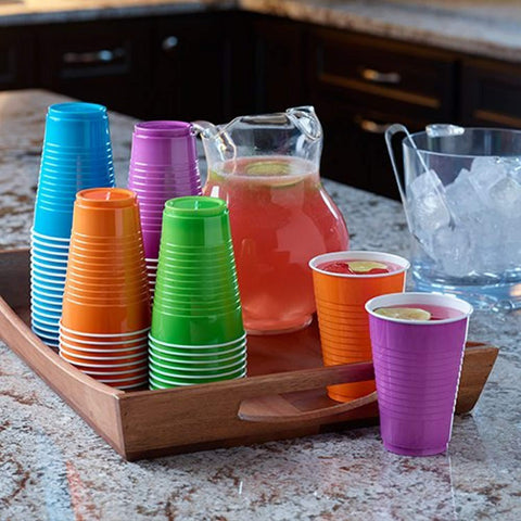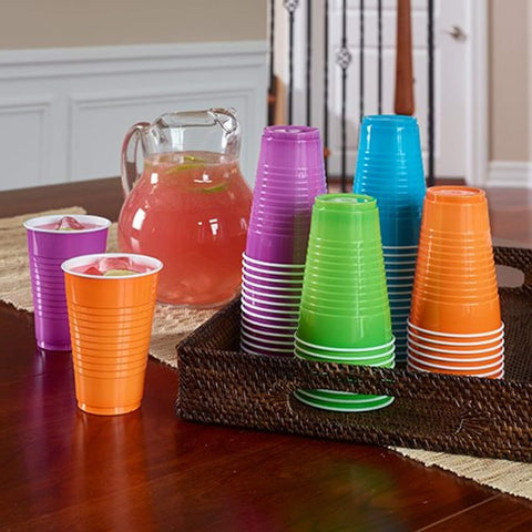 Hefty Disposable Plastic Cups in Assorted Colors - 16 Ounce, 4 Packages of 100 Cups (400 Total)