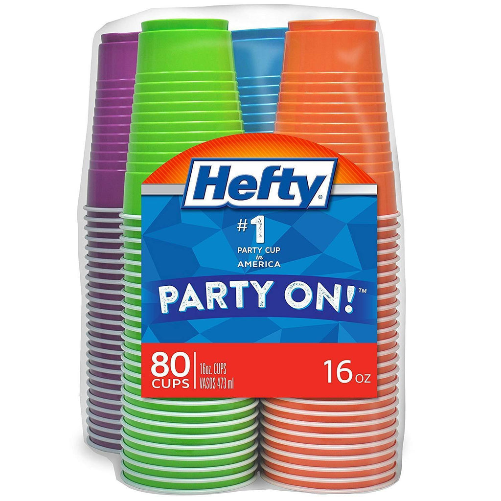 Hefty Everyday Disposable Plastic Cups take all the fuss and mess out of entertaining while adding vibrant color and hassle-free cleanup to your gathering. These colored plastic cups feature a sleek and stylish shape that shows guests how elegant and practical plastic drinkware can be. An easy-to-grip cup means less spillage and more in-hand comfort, which is great for both your carpet and your guests' clothing. Hefty disposable party cups feature dependable durability, so your guests can enjoy cup after cup of your fruit punch or adult party beverages without worrying about breakage. Choose assorted color cups to add pizzazz to your table setting. Not only are these strong and sturdy large plastic cups great for parties, they are a child- and budget-friendly choice for everyday use at home. Hefty plastic cups simplify cleanup, saving you the time and energy involved in washing countless glasses, so you have more time for relaxing with loved ones.