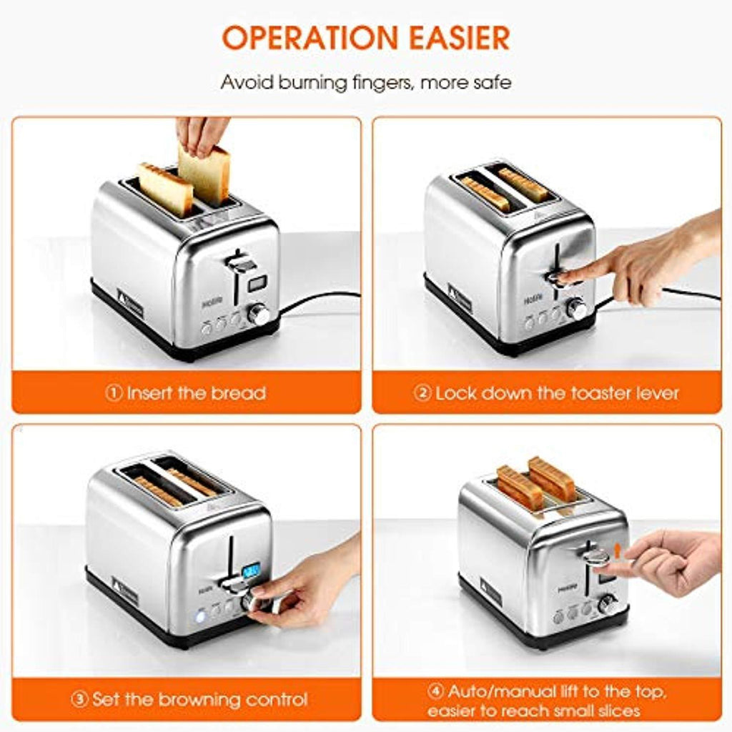 HOLIFE Toaster Two Slice Stainless Steel Bagel Toaster with 6 Bread Shade Settings, Bagel/Defrost/Reheat/Cancel Function, Extra Wide Slots, Removable Crumb Tray, 900W, Silver (Upgraded)