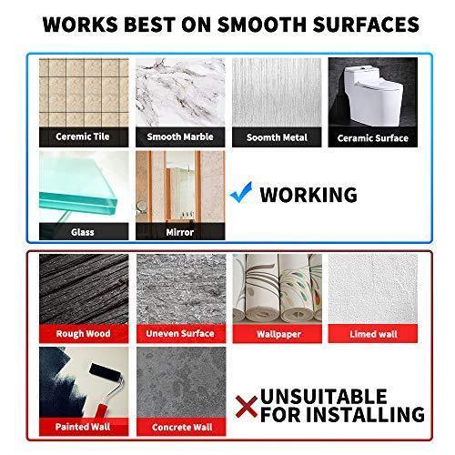 NOTICE:Drill-free installation is suitable for flat and smooth surfaces without dust or water, such as tile, glass and metal. DO NOT apply this product on painted wall nor wallpaper as it may damage to these surfaces. Please wait for 48 hours before use.