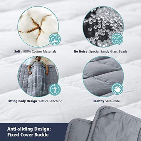 ✓【New Process,Safty & Healthy Premium Material,】–Lapsuus unique 7-layer weighted blankets is designed to comfortably surround your body and form to your shape while you sleep and the MORE glass beads & LESS fiber fill design offers better temperature control.Each mosaic compartment has a glass bead sewn into place to prevent movement and noise while you're resting & provide soft, evenly-distributed weight that gently conforms to your body.Inner layer is 100% breathable cotton & filling.