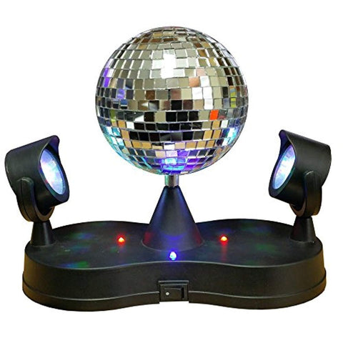Make your next party the talk of the town as you heat up the dance floor and get funky ... disco style. Mirror ball rotates atop a 9 1/2" black plastic base with on/off switch. Get your groove on! Great for a kids bedroom. Includes 2 adjustable projecting lights with red, blue and green lightbulbs and AC adaptor.