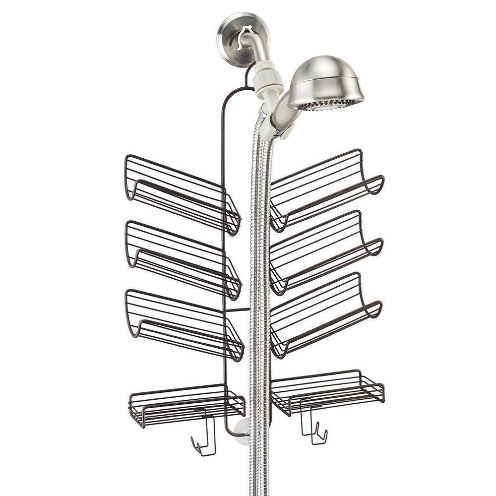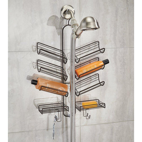 mDesign Hand Held Hose Bathroom Shower Caddy for Shampoo, Conditioner, Soap - Bronze