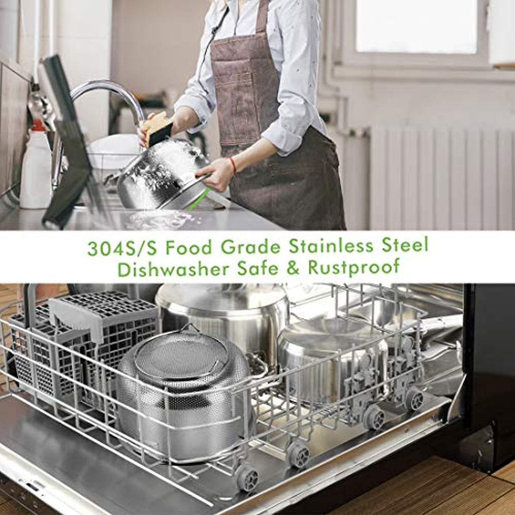 THE MOST HOLEY STAINLESS STEEL STRAINER ON THE MARKET - Why holey? For steamer baskets that have only a few holes punched, frozen ingredients would often melt and clog up the holes, leading to uneven cooking where the bottom layer of food is overcooked, while the top layer is undercooked; Te-Rich Steamer Basket with numerous holes punched out on both the bottom and sides, which allows more ways for steam to penetrate the basket and to steam food evenly