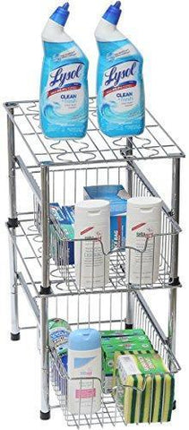 Simple Houseware Stackable Under Sink Cabinet Sliding Basket Organizer Drawer, Chrome