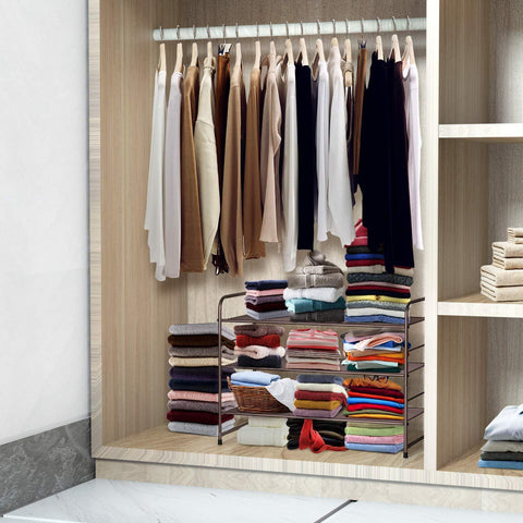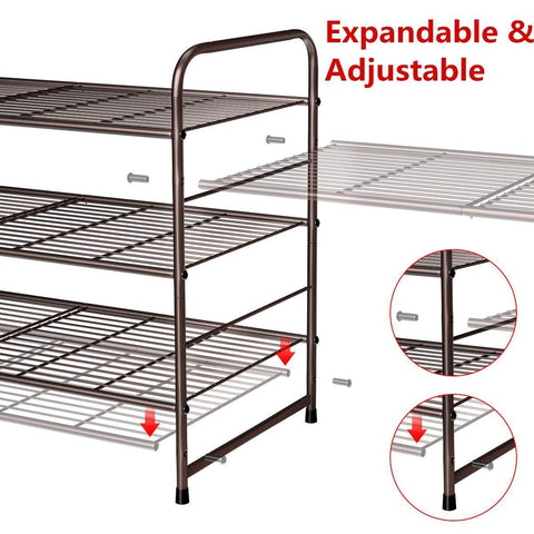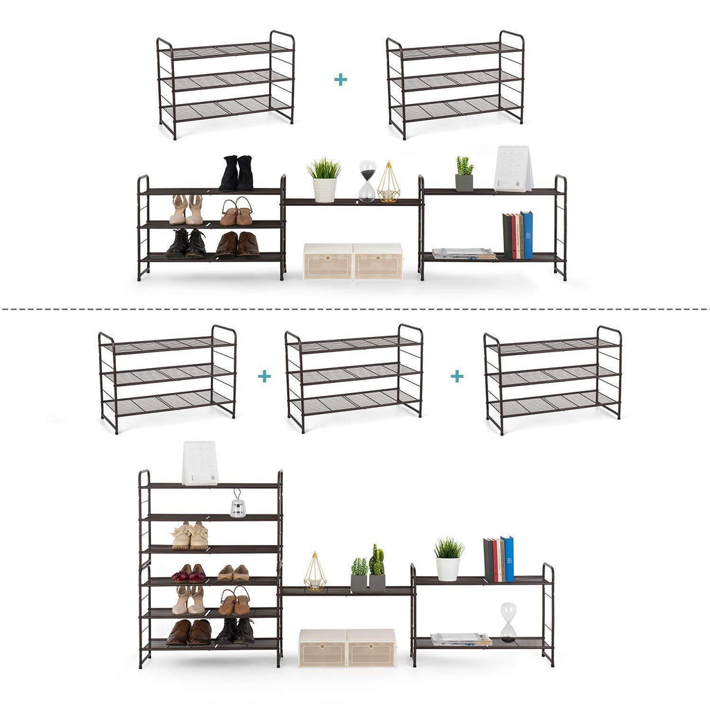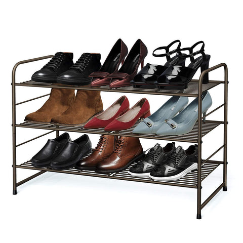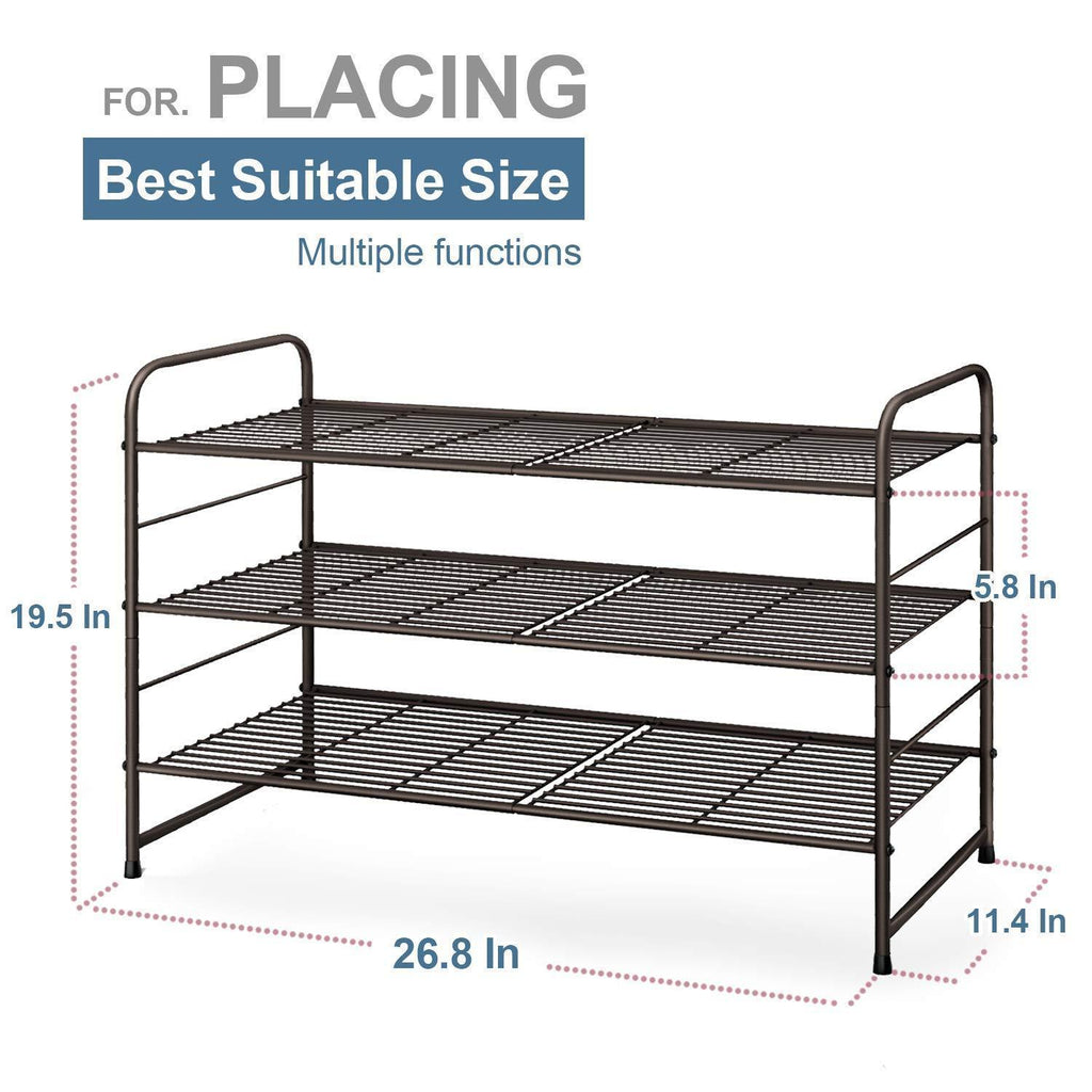 Simple Trending 3-Tier Stackable Shoe Rack, Expandable & Adjustable Shoe Shelf Storage Organizer, Wire Grid, Bronze