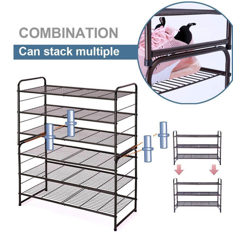 • 【STACKABLE AND EXPANDABLE FOR DIY】2 sets can be stacked vertically to get a complete 6-tier shoe rack or bridged horizontally to expand the unit.