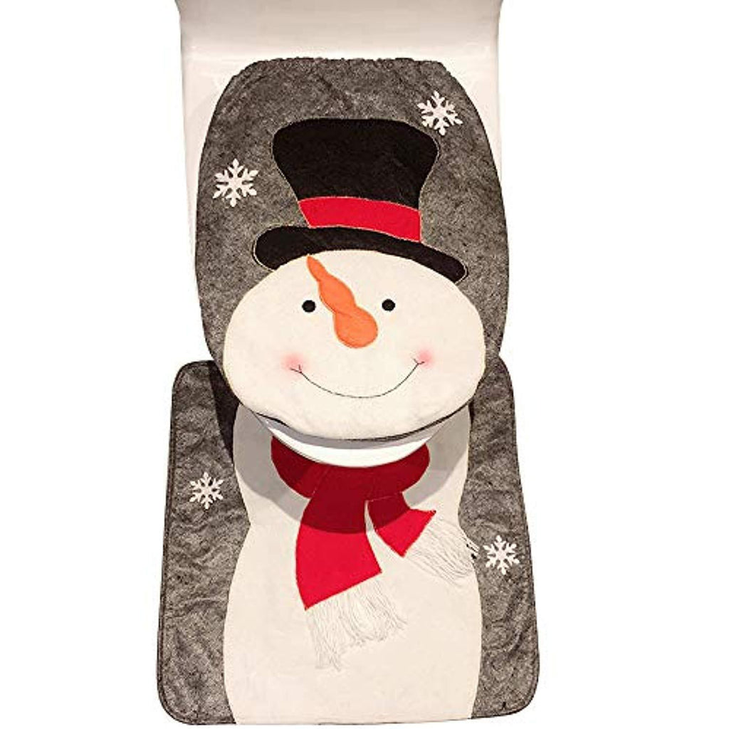 Snowman Santa Toilet Seat Cover and Rug Set Christmas Decorations Bathroom (Snowman)
