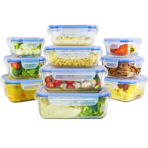 Zestkit Glass Food Storage Containers Set ZK-CS11 Rectangular / Round Container with Airtight Transparent Lids, BPA-Free, Leak Proof. Use for Home, Kitchen, Restaurant (10 Containers + 10 Lids)