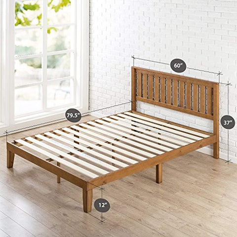 Zinus Alexia 12 Inch Wood Platform Bed with Headboard / No Box Spring Needed / Wood Slat Support / Rustic Pine Finish, Queen